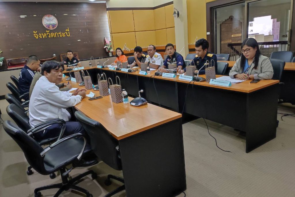 ณ ห้องประชุมเลขที่ ๕ อาคารศาลากลางจังหวัดกระบี่(หลังเก่า) โดยมี น.อ.มนพ ประดิษฐ์ รอง ผอ.ศรชล.กบ. เป็นประธาน ผู้ร่วมประชุมได้เชิญหัวหน้าส่วนราชการและสมาคม ประกอบด้วย เจ้าท่าภูมิภาคฯ ด่านศุลกากรฯ ประมงจังหวัด ศูนย์ปราบปรามประมง ทรัพยากรทางทะเลและชายฝั่งที่ 10 สถานีตำรวจน้ำกระบี่ สวัดิการและคุ้มครองแรงงาน องค์การบริหารส่วนจังหวัด (อบจ.) ป้องกันและบรรเทาสาธารณภัย (ปภ.) สมาคมธุรกิจท่องเที่ยวจังหวัดกระบี่ สมาคมประมงจังหวัด อุทยานแห่งชาติธารโบกขรณี อุทยานแห่งชาติหาดนพรัตน์ธารา อุทยานแห่งชาติเกาะลันตา และ นรภ.ทร.เกาะลันตา วัตถุประสงค์การประชุมเพื่อชี้แจงบทบาทภารกิจของ ศรชล.จว.กบ. และแผนการปฏิบัติงานในปี งป.๖๗ รวมทั้งหารือรับฟังความเห็น ข้อเสนอแนะแนวทางการปฏิบัติงานร่วมกัน ซึ่งทุกภาคส่วนเห็นชอบแนวทางการบูรณาการ และ การสร้างเครือข่ายการปฏิบัติงานของหน่วยงานภาครัฐ อันจะทำให้ประชาชนมีความเชื่อมั่น ศรัทธาและสามารถปฏิบัติงานได้อย่างมีประสิทธิภาพสูงสุด
